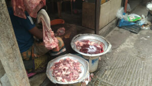 শনিবার (১৫ জুন) রাজধানীর বিভিন্ন বাজার ঘুরে দেখা গেছে, প্রতিটি মাংসের দোকানেই দু’একটি করে গরু-খাসি জবাই হয়েছে। ব্যবসায়ীরা ৭৮০ টাকা দরে গরুর মাংস বিক্রি করছেন। পাশাপাশি খাসির মাংস বিক্রি হচ্ছে ১১০০ টাকায়। অন্যদিকে প্রতি কেজি ব্রয়লার বিক্রি হচ্ছে ২১০ থেকে ২২০ টাকায়। পাশাপাশি সোনালি মুরগি বিক্রি হচ্ছে প্রতি কেজি ৩৮০ টাকায়, কক প্রতি কেজি ৩৭০ থেকে ৩৮০ টাকায়, ছোট সাইজের পাকিস্তানি মুরগি প্রতি কেজি ৩৮০ টাকায় এবং দেশি মুরগি প্রতি কেজি বিক্রি হচ্ছে ৬৫০ থেকে ৭৫০ টাকায়।